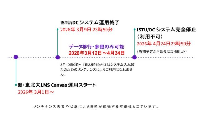 【スケジュールが変更されました】ISTU/DC 終了と新・東北大LMS 導入のお知らせ